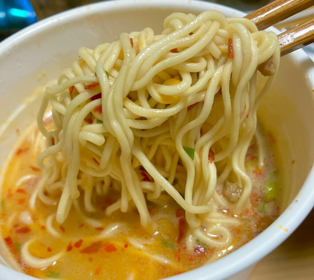 あっさりめ豚骨を食べたい時に、なんだかまた食べたくなりそう‥!そんな後引くカップ麺でした。
