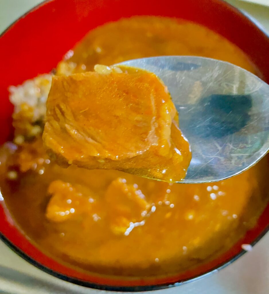 この大きさのお肉も入っているし、一つ二つとかじゃなくて結構ゴロゴロって言っていいくらい入ってた!