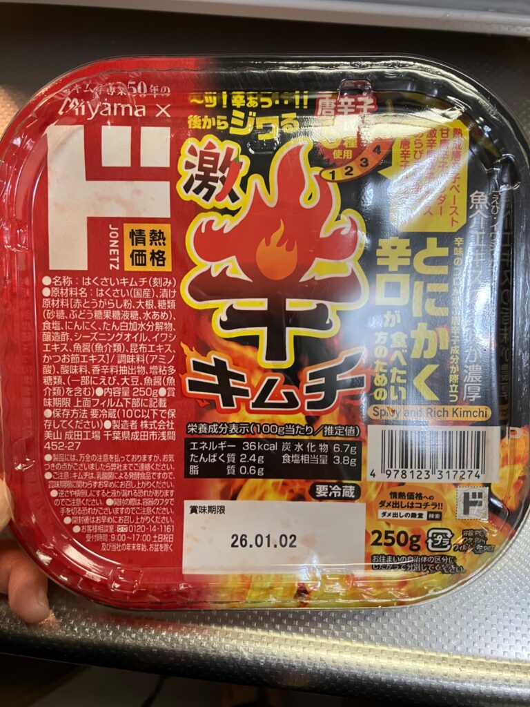 普通のキムチよりは多少辛いけど、おいしく食べられる感じだね✨
