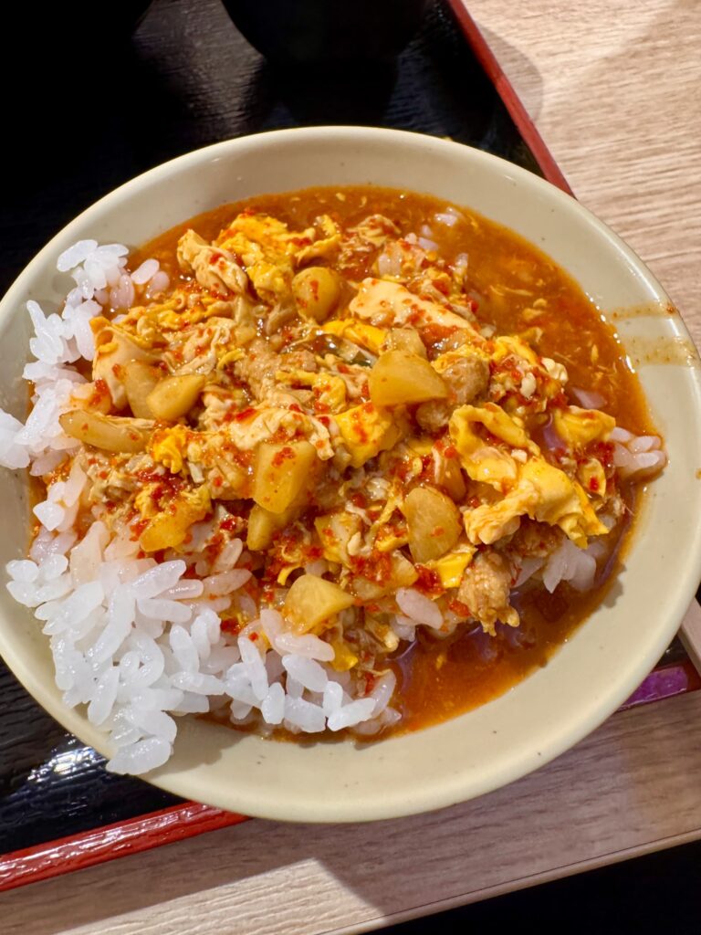 ベースの甘めのスープでカレーを作ってるのかな?って感じで、甘めのあの感じもありつつサラッとしたカレー味で美味しい!