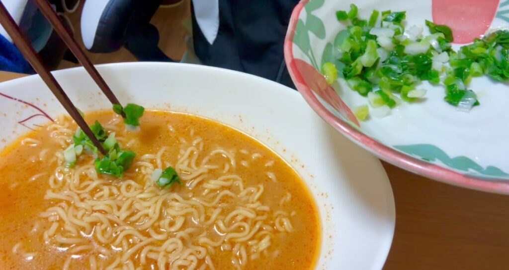 青ネギは業務スーパーの冷凍青ネギを入れましたが、これでも結構ネギの風味がプラスされて全然美味しい!!