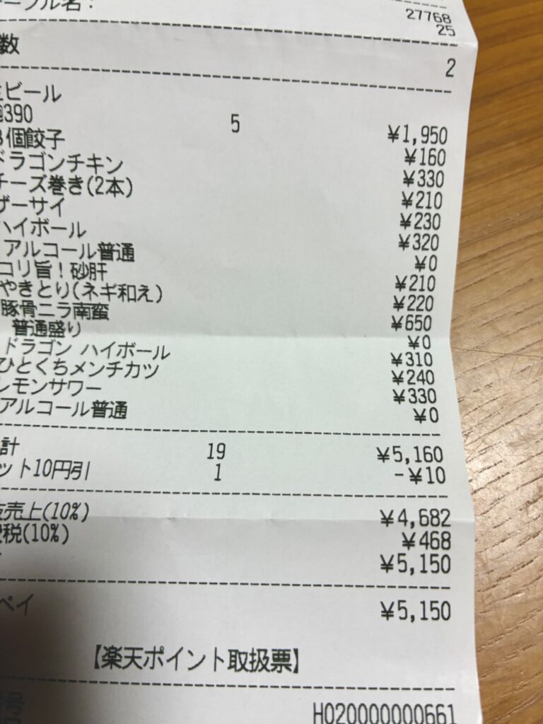 結構好きに飲み食いしてしまいましたが、二人でお会計が5000円